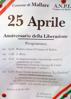 - 11,45 Commemorazione e deposizione corona al Monumento dei Caduti, interverrà il Senatore della Repubblica Giovanni B. Urbani (nome di battaglia: Candido)