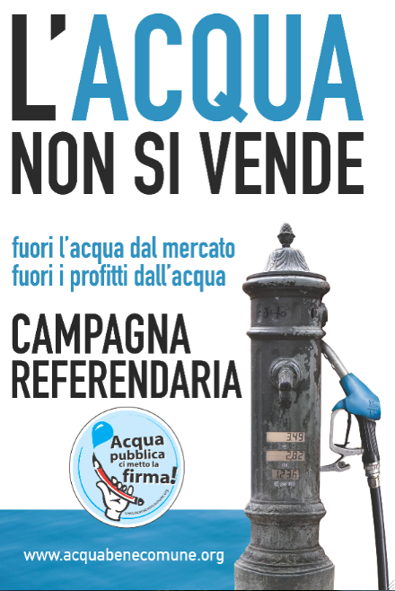Domani comincia, a livello nazionale, la raccolta di firme per la salvaguardia dell'acqua come bene pubblico e non commercializzabile a fini economici.